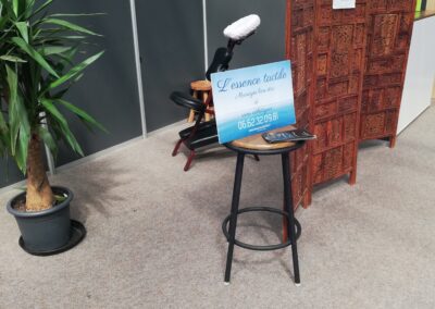 Partenaire du tournoi, je bénéficie, depuis 2021, d’un stand pour masser tout ceux qui le souhaitent et éviter les torticolis en regardant les matchs!